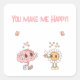 Cheerful square stickers featuring a happy walking brain with chemical DNA smilies and the text You Make Me Happy! (text is customisable).