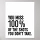 You Miss 100% Of The Shots You Don't Take Motivational Black & White Fitness Quote Saying Typography
