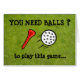A golf tee with a golf ball, with words saying you need balls to play this game, makes a funny golf card for that golf player.
