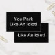 Tired of people parking like idiots? Leave this on the car of the next person that takes up two parking spots, parks too close to you or parks in a no parking zone.