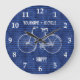 You Plus Bicycle Equals Happy Antique Stripes Blue Large Clock