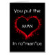 You put the man in ro"man"ce. Perfect card for YOUR man. Done in black with a red heart.