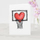 This Valentine's Day card shows a big red heart right in the center, dropping through a basketball hoop like it just made the winning shot. The heart is a deep crimson red with small white specks on it, almost like confetti or shiny highlights. The backboard, rim, and net are drawn with loose black lines, giving the whole scene a hand-drawn look. A light gray wash sits behind the hoop to suggest the backboard and keep the focus on the heart. There isn’t any printed message or lettering on the front, so the picture tells the story on its own. It feels like a sweet way to say love is worth going for, whether it’s romance or close friendship ❤️💌🍫. Hope you’ll pass it along and help someone feel cared for this Valentine’s Day.