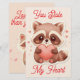 This adorable raccoon Valentine card is guaranteed to steal hearts! The front features a sweet woodland raccoon holding a heart with the charming phrase “You Stole My Heart.” On the back, a second lovable raccoon holds a Valentine heart, paired with the message “Loved More Than You Know!”