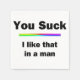 Celebrate the real you with this funny "You Suck. I Like that in a Man" design and celebrate the freedom and pride of the gay community.