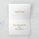 A beautiful card. Highest quality materials and print. Misunderstood the explanation of the gold accent. I took it as the design would be metallic in its appearance. Still a lovely card and I am extremely happy with it overall. Perfect, only that I expected the gold to be metallic.