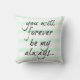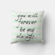 Throw Pillow with quote about love/special relationships: you will forever be my always; black text on mint and white stripes