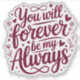 Celebrate timeless love with this heartfelt design featuring the phrase “You Will Forever Be My Always.” This romantic quote captures the feeling of unconditional commitment, deep connection, and forever love—perfect for couples who believe in soulmates and lasting bonds.
