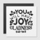 Bring encouragement and positivity with this inspirational quote design: “You Will Have Joy and Gladness.” Inspired by scripture, this uplifting message is perfect for Christians, people of faith, or anyone who loves motivational art. Great for shirts, mugs, stickers, wall art, and thoughtful gifts that spread joy and encouragement.