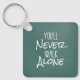 You'll Never Walk Alone Quote gifts with vintage aqua green chalkboard background and white typography print. See more inspirational and motivational Christian gifts at Christian Quotes. Vikkelynn Designs & Co