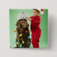 Young boy wrapping Christmas lights around a dog 15 Cm Square Badge