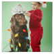 Young boy wrapping Christmas lights around a dog Ceramic Tile