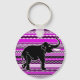 Young Elephant Silhouette on Purple Patterned Key Ring
