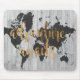 den text phrase and a black map of the world over a grey plank background.. Artist: Studio W