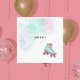 Young girl roller skating birthday party napkins. Colourful. Turquoise.