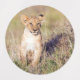 A young lion sitting beside a termite mound. This image was taken on a safari in Kenya, Masai Mara Game reserve.
