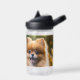 This water bottle features a heartwarming image of a young Pomeranian puppy amidst a picturesque field of vibrant flowers. It's a slice of pure joy that you can carry with you wherever you go.