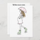 Excellent graphic illustration of young, pregnant lady taking a walk in the rain just kickin' it. Green and pink image of young lady with golden hair walking in her rain boots and fun dress. There is room on the ack for your personal message. Card comes with envelope.