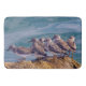 The shore birds in the original photograph by ZoeSPEAK on this Bath Mat are called ruddy turnstones. The young brown and white birds, their winter colouring, are standing on some rocks of a jetty overlooking the swirling blue ocean waters of the inlet.