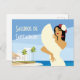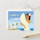Young Spanish Lady posing with fan in ocean coast Postcard
