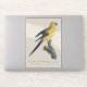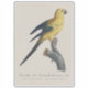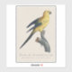 This image is a finely detailed natural history illustration of a young Sun Parakeet, historically referred to in French as “Guarouba dans son jeune âge.” The artwork captures the bird perched gracefully on a textured branch, showcasing both anatomical precision and aesthetic refinement typical of early scientific illustration. The parakeet is depicted in its juvenile stage, which differs subtly from the more vibrant adult coloration. Its plumage is predominantly a warm golden-yellow, with hints of green and deep blue on the wings and tail. These cooler tones—especially the dark blue flight feathers—contrast elegantly with the softer yellow body, indicating the transitional phase before the bird reaches full adult brilliance. The curved black beak and attentive eye lend the bird a sense of alertness and vitality. This illustration is attributed to Jacques Barraband, a renowned artist known for his contributions to ornithological works in the late 18th and early 19th centuries. His work often appeared in scientific volumes dedicated to documenting exotic bird species, combining artistic beauty with scientific accuracy. Native to northeastern South America, particularly regions of Brazil and Guyana, the Sun Parakeet inhabits tropical savannas and forests. Juveniles like the one shown here are less vividly coloured than adults, which develop striking orange and yellow plumage as they mature. Today, the species is admired for its beauty but is also considered endangered due to habitat loss and trapping for the pet trade. Overall, the image represents both a scientific record and a work of art, preserving the delicate features of a young Sun Parakeet for study and admiration.