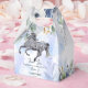 Young wild and free galloping Appaloosa birthday party personalised favour gift boxes, with dusty blue flowers, for girls who love horses, horses themed birthday.