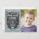This cute third birthday invitation has a "Young, Wild, and Three" theme. The photo invite includes hand lettering, a rustic chalkboard sign, and an animal tracks pattern. Personalise with your party details and a photo of the birthday girl or boy.