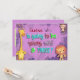 This bold birthday invitation card is perfect for your wild three year old. The design is adorable featuring jungle animals, bright purple colour scheme, and a place on the back to add your little one's photo.