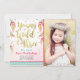 Young Wild and Three Feathers Pink Gold Birthday Invitation