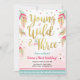 Young Wild and Three Feathers Pink Gold Birthday Invitation