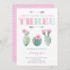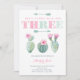 Hot pink and light green cacti 3rd birthday invitations for a girl