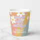 Young Wild and Three Retro Rainbow 3rd birthday paper cups with boho daisies.