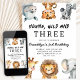 Young Wild and Three Safari Birthday Party Invitation