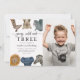 Cute and fun kid's safari animals theme 3rd birthday party invitation featuring illustration of safari animals of giraffe, snow leopard, rhino, lion, elephant, and zeebra. The text says "young, wild and three." Perfect for a boy's birthday party. You can add your child's picture on this card.