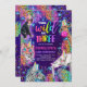 Young Wild And Three Safari Neon Cheetah Birthday Invitation