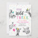 Young Wild and Three Safari Party Animals Birthday Invitation