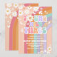 Celebrate your little ones big day with this colourful "Young, Wild & Three- birthday invitation. Featuring a pastel rainbow background with daisies, stars, butterflies, and sparkles, this playful design sets the tone for a fun and whimsical party. Perfect for a girls third birthday, this customisable invite includes all the essential details and adds a cheerful, boho vibe to your celebration. Make your childs milestone unforgettable with a trendy and vibrant invitation that guests will love.