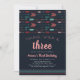 Adorable invitations for your wild one's third birthday feature a border of colourful feathered arrows in navy, teal and peach. "Young, wild and three" appears in peach lettering, with your birthday party details beneath.