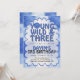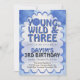 Young Wild and Three Boy Birthday Invitation | Modern Retro Blue 3rd Birthday Party Invite.