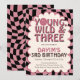 Young Wild & Three Pink Retro Girl 3rd Birthday Invitation