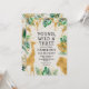 Celebrate your little wild thing's third birthday with this jungle safari themed invitation, featuring gold faux foil animals (giraffe, lion and monkeys), gold and green jungle foliage, and a sprinkling of gold confetti. Add your child's name and party details in black text on an ecru background. A coordinating jungle foliage pattern in green and gold decorates the back of the card.