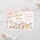 Help celebrate your little girl's 3rd birthday with this adorable tribal / boho inspired party invitation. The design features cute safari animals wearing a girly flower crown on their heads, standing next to a pretty pink teepee adorned with watercolor blush roses and soft greenery. If you wish change the fonts, font colours or re-arrange the text placement, simply click the "Customise Further" button.
