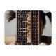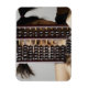 Young woman peering through abacus. magnet