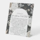It is sturdy than I expected. Was worried about the material being flimsy but it is not. It is printed on some sort of plastic material. It should serve well at our wedding as long as wind isn’t too bad. Otherwise we will put some paper weights behind it and should be fine.
