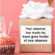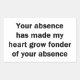 For the sarcasm lover in all of us. Check out this witty “Your Absence has made my heart grow fonder of Your Absence” design on apparel, mugs, mousepads, buttons, and other unique gifts.