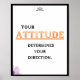 Step into a world where inspiration ignites every corner with our captivating Motivational Quote Poster. "Your attitude determines your direction." This empowering mantra is more than just words on paper; it's a beacon of motivation guiding you towards success. Crafted with finesse, the elegant typography dances across the canvas, drawing the eye and stirring the soul. Hang it in your workspace, where each glance fuels your determination, or grace your living space with its presence, infusing every moment with positivity. Let this poster be your daily reminder that your attitude is the compass that steers your journey forward. Elevate your surroundings and elevate your mindset with this timeless piece. Embrace the power of positivity and watch as it transforms your life in remarkable ways. Claim your destiny today with our Motivational Quote Poster.