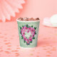 Pink roses in a heart shape wreath handing on a wooden wall painted pale green. A casual beautiful heart design that makes a beautiful theme for a bridal shower, wedding, anniversary, or Valentine's Day party.