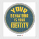 Inspire positivity and self-awareness with this bold and meaningful sticker. Featuring the empowering slogan "Your Behaviour is Your Identity," this design serves as a daily reminder to lead with kindness, integrity, and authenticity. Perfect for laptops, journals, water bottles, or any surface that could use a touch of motivation. Elevate your space and mindset with this impactful sticker.