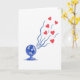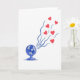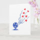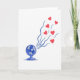 This greeting card shows a stylized electric fan in shades of cerulean and deep blue sitting in the lower-left area on a plain white background. The fan has simple, geometric blades and a bit of shading that makes it look slightly three-dimensional. Flowing out from the fan are wavy streams of dark blue air that sweep across the card toward the upper-right. Mixed into those air streams are bright red hearts, floating upward like the fan is sending love into the room ❤️. The hearts look smooth and neatly shaped, and the strong contrast between the cool blues and warm reds makes the message feel clear and sweet 💌. There isn’t any text on the card, so the picture does all the talking and feels open and uncluttered 🍫. It’s a fun way to suggest spreading affection, comfort, or friendship with a simple everyday object.