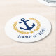 A nautical themed, personalised set of round paper coasters with your boat name, family name or other desired text as needed. Featuring a custom designed vintage boat anchor, gold style laurel leaves and star emblem on white or easily adjust the primary colour to match your current theme.